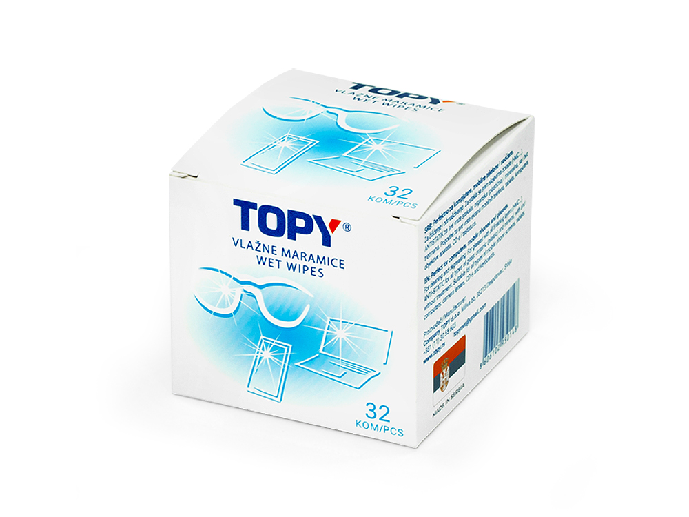 TOPY wet wipes are a combination of a cleaning agent and a special type of wiping paper, ideal for the everyday maintenance of your glasses and all types of glass surfaces.